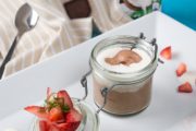 Krém z hořké čokolády s kokosovou omáčkou a jahodami