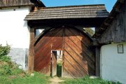 Vrata se sedlovou stříškou jsou z konce 16. století, tedy nejstarší z naší sbírky. Pyšní se jimi miniskanzen – Michalův statek v Pohledi u Světlé nad Sázavou