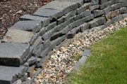 Vyšší zídkou lze zajistit i úpatí strmého svahu. Tam ale na betonový základ nejprve umístěte opěrné stěny ve tvaru písmene „L“ a ty z vnější strany zakryjte vyskládanými kameny.