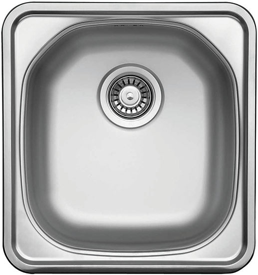 K levnějším výrobkům patří dřez Compact 465.435M vyrobený z nerezu s matnou povrchovou úpravou. Má hloubku jen 15 cm, další rozměry vaničky jsou 46,5 x 43,5 cm. 1 439 Kč.