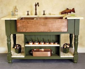 Dřez Garonne je vyroben z ručně opracované mědi. Hodí se jak do moderní, tak tradiční venkovské kuchyně. Dřez má šířku 950 mm a je vybaven dvěma vaničkami. Skříňku pod dřez můžete objednat také u prodejce, kde vám ji vyrobí na míru. Cena 45 750 Kč.