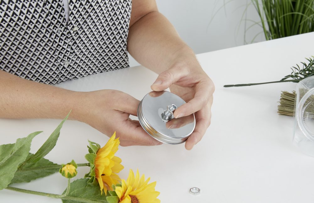 - Nejprve si připravíme vše potřebné. Základem lampy bude skleněná nádoba s plechovým víčkem. Může být válcovitá, baňatá, nízká či vysoká, podle toho, jaké rostliny nebo dekorace do ní chceme umístit