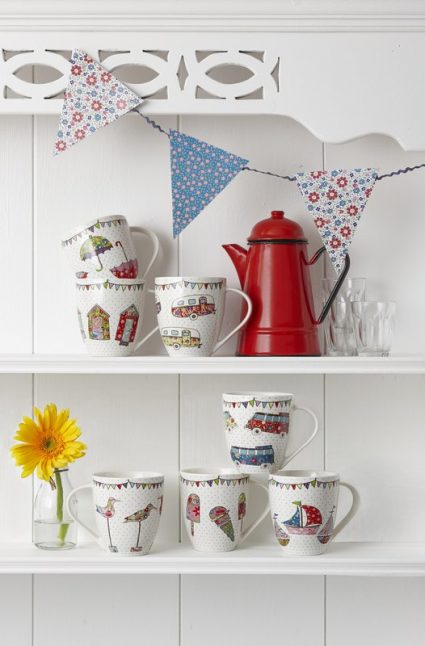 Poličky v kuchyni nebo dětský pokoj ozdobíme pestrými vlaječkami. Mezi dva trojúhelníky zažehlíme na vyztužení vlizelín a pověsíme na barevnou stuhu