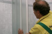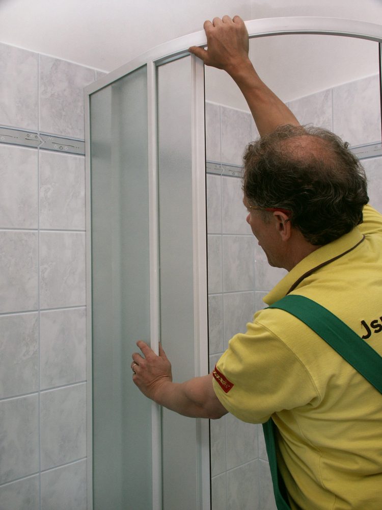 Vše vyrovnáme tak, aby dveře dobře doléhaly, hladce se pohybovaly a byly zarovnány i se stěnami kabiny.