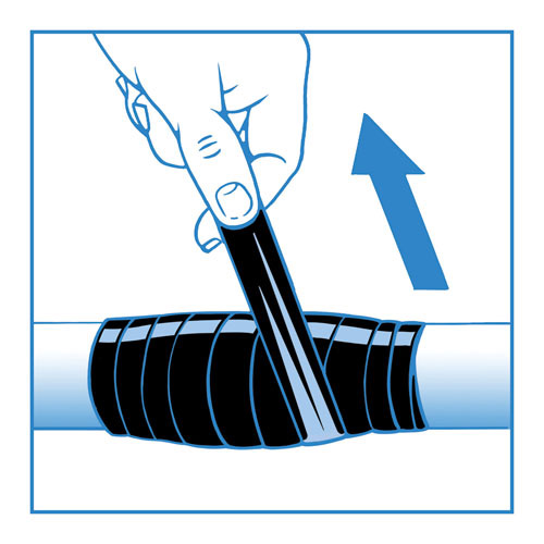 Není to běžná opravná páska, ale tzv. samosvařitelná silikonová páska bez lepidla, jejímž principem je „zatavení“ několika vrstev do sebe. Princip lepení je velmi jednoduchý – pásku během obtáčení poškozeného místa natahujete. Po nanesení několika vrstev se začne páska opět smršťovat a spojí se do jedné pevné vrstvy.