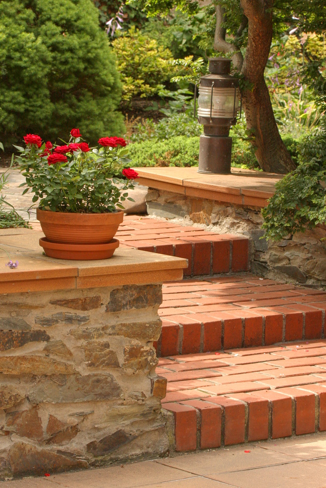 Cihly a keramika dobře ladí se zelení. foto Zdeněk Roller