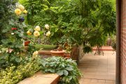 Je velmi intimní a romantická. Nejspíš i proto, že se kolem svažitého, zídkami vymodelovaného pozemku zachovaly staré dřeviny, zdi a ploty. Majitelé, architekt a scénografka oplývají množstvím nápadů, proto vznikla zahrada plná tajemství a drobných překvapení.