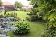 Boční část zahrady stíní statný ořešák, který navíc brání přehřátí sousední výsadby odpoledním sluncem