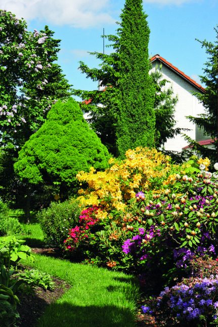 Vzhledem k patině a mohutnosti výsadeb je podivuhodné, že rozhodnutí přišlo před pouhými dvaceti lety. Vysvětlení je prosté: pan Jirka není žádný troškař, a když se do něčeho pustí, dělá to pořádně. Postaví jednu skalku a už ho láká zkusit si další. A když nestaví skalku, buduje nové jezírko nebo rozšiřuje výsadby. Místa je tu dost, a tak vznikají nová a nová zákoutí a zátočiny s výsadbou zajímavých dřevin – listnáčů i jehličnanů.