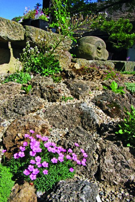 „Skalka je vlhká, vodu sem přivádím ze studně, takže kameny samy od sebe získaly patinu, dokonce jsem už musel mechy i likvidovat, aby jich nebylo mnoho. A kapradiny musím vytrhávat, aby nezarostly celou skalku.“