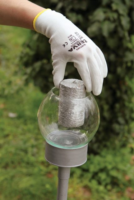 Tento základ lampy zapíchneme v zahradě do země a nasadíme na něj skleněné stínidlo