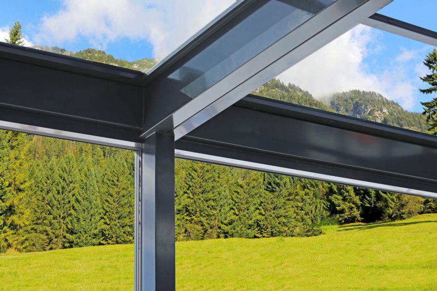 Detail lehké konstrukce z hliníku. Takové zahrady se často budují na klíč jako stavebnice, foto: Shutterstock