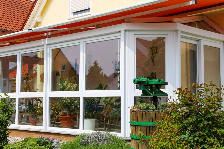 Ukázka využití jednoduché kovové konstrukce přístavby s vnitřními závěsy, jimiž lze snadno regulovat sluneční světlo, foto: Shutterstock