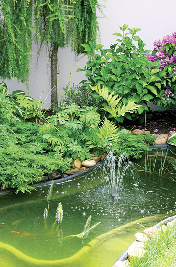 Malá zahrada se spokojí i s jednoduchou venkovní oblázkovou fontánou nebo i s pouhou tryskou, kterou lze umístit do zahradního jezírka nebo do jakékoliv miniaturní nádržky. Pokud jste si nevyšetřili místo na jezírko, je tu ještě jedna možnost: dekorativní fontána s mísou, z níž je voda čerpána zpět do trysky, takže stačí minimum vody. Může být umístěná nejen do prostoru, ale i na zeď ohraničující pozemek.