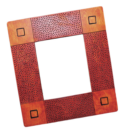 Do dřeva rámu se dá rýt rydly, vytlačovat nebo vypalovat jednoduchý vzor. Teprve pak rám oživíme barevnou lazurou.