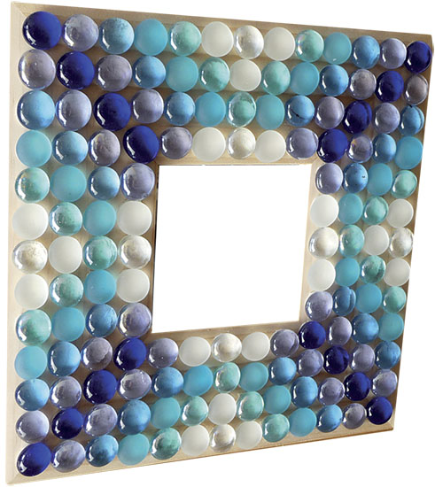 Přivezli jste si z letní dovolené hezké mušličky či kamínky? Seskupte je zajímavě do jednoho nebo dvou rohů rámu a přilepte tavnou pistolí. Každý pohled do zrcadla vám bude připomínat idylické dny u moře.